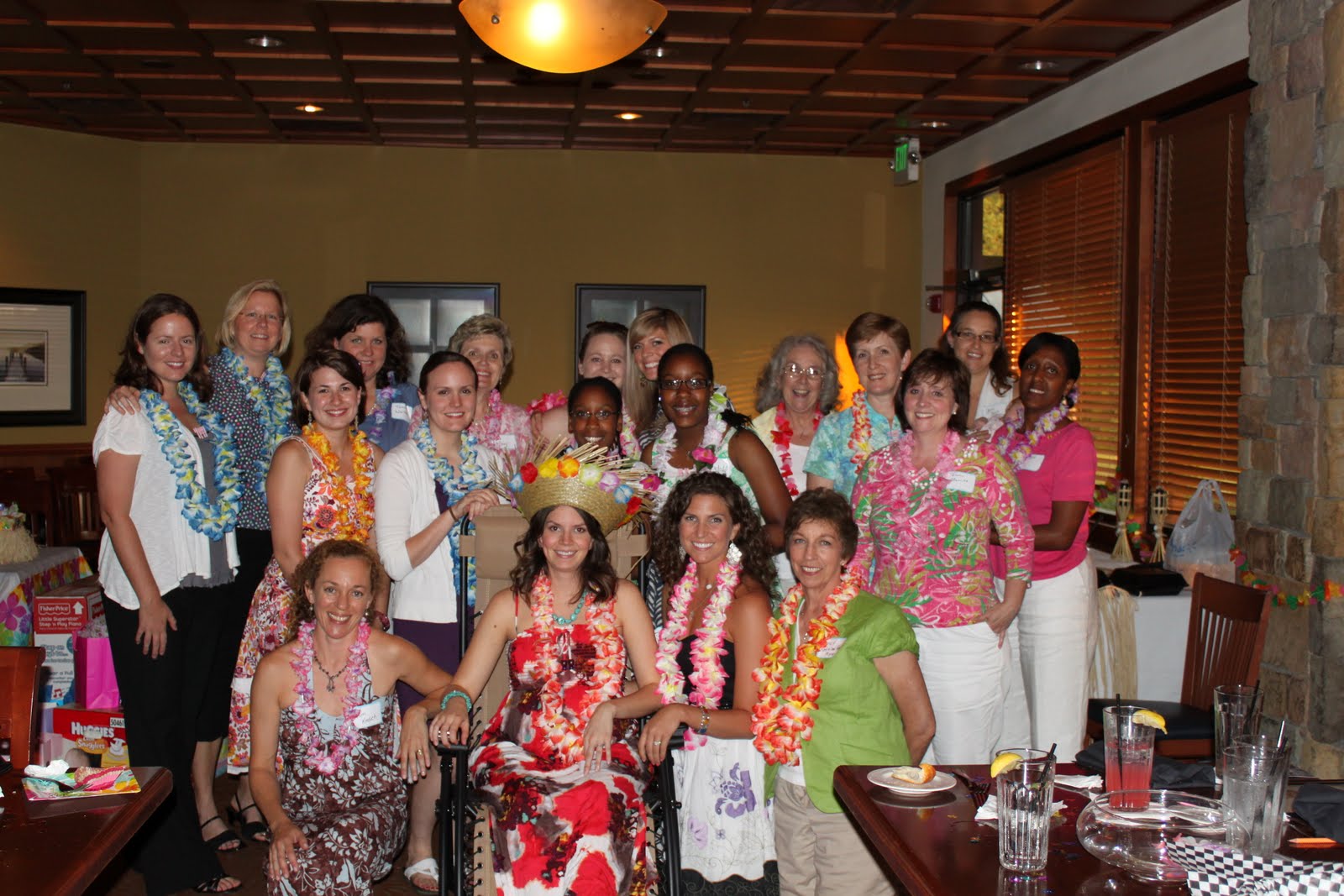The hostesses with Katie. From left - Katie M., Nancy, Kensley, Kathy & Erin with Katie in her lounger.